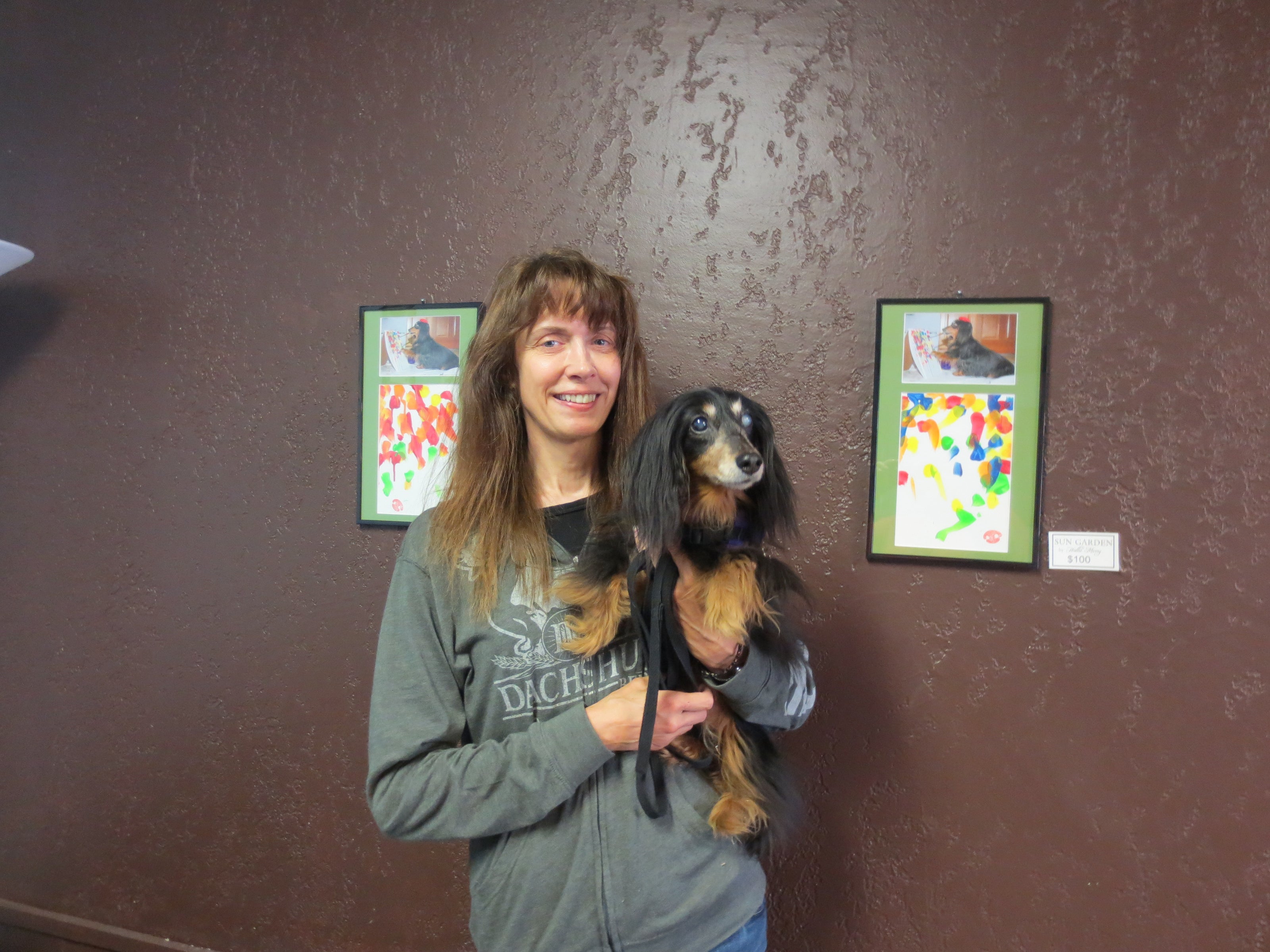 She raised over $35,000.00 in sales of her art all of which she donated to dog rescue. I rescued her from an animal shelter when she was about a year old where she had been dumped during the night with two other Dachshunds so it was fitting she could give back. She also won a Humanitarian Award for her donations and we are both in a documentary on Animal Planet called Million Dollar Duck.