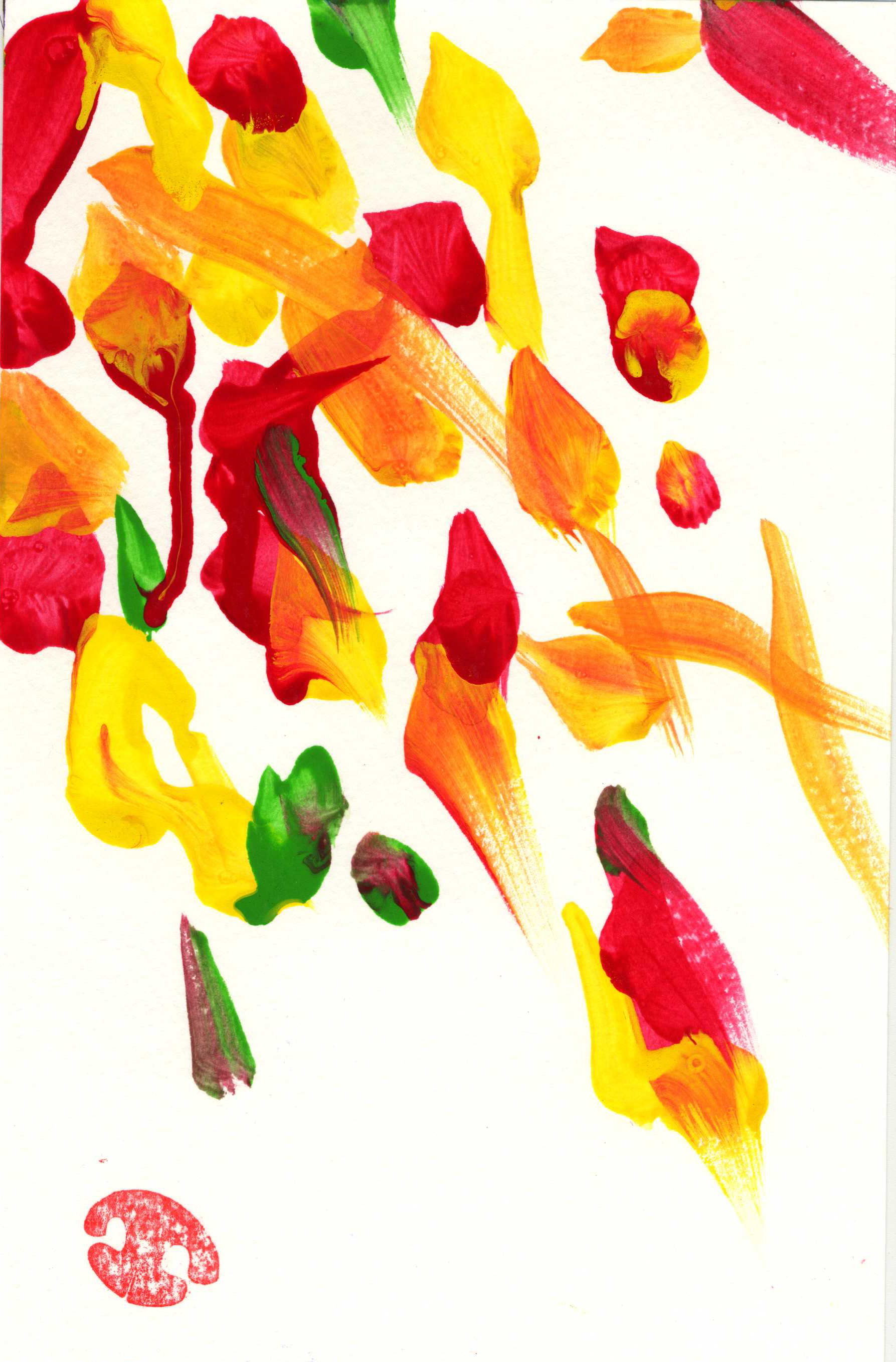 One of Hallie's later paintings. Her style changed as I got better with having the paint the right consistency and a more appropriately sized brush for her.