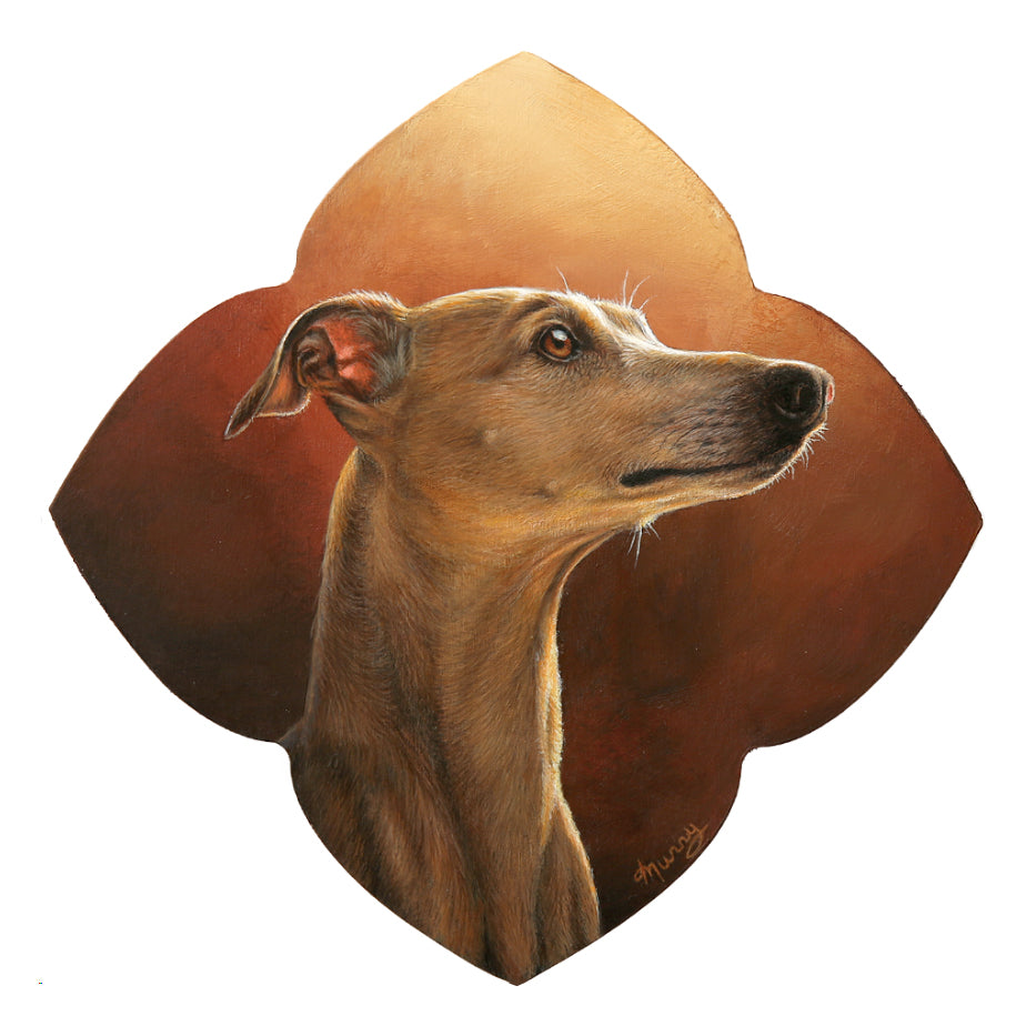 I have been wanting to experiment with a little more dramatic lighting and mood, so painted this sighthound in the old masters palette which was very fun to do!