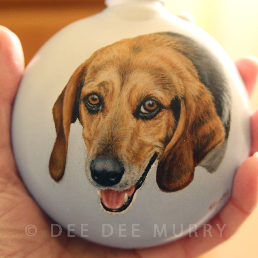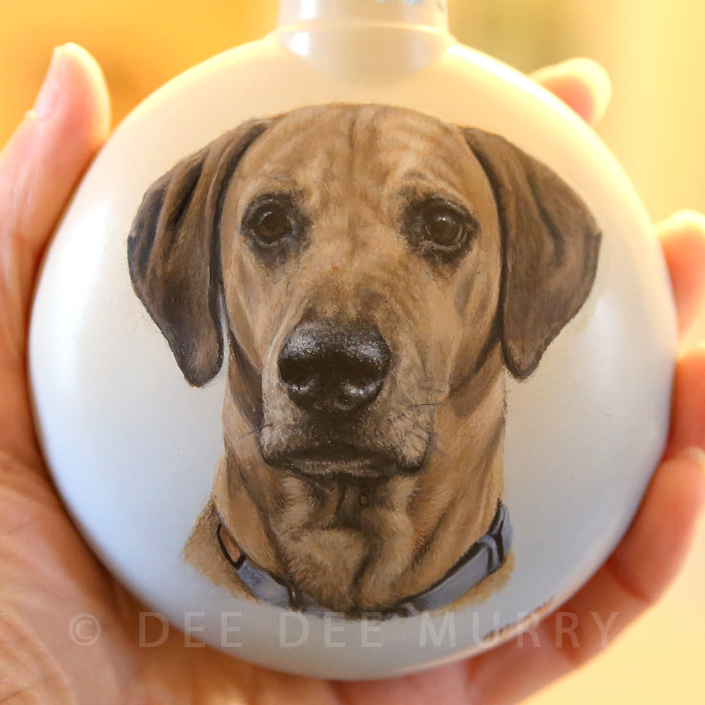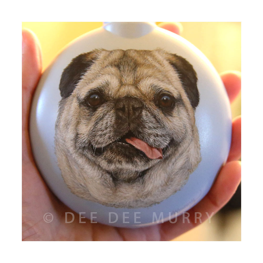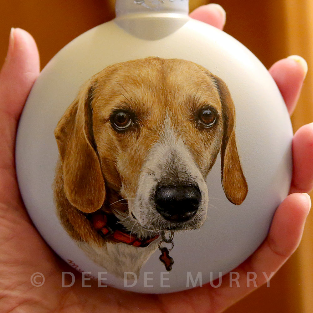 Each pet is meticulously painted on a 4” shatter proof ornament base and comes with a bow on the hanger. Each ornament takes between 25-35 hours to complete. I strive to capture every nuance and detail that makes your pet truly one of a kind.